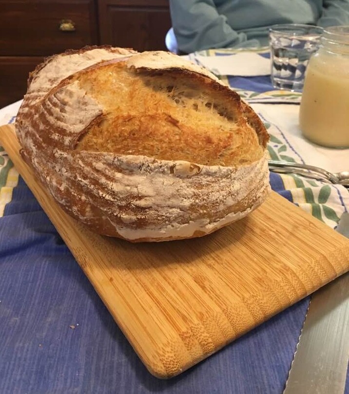 A few friends dropped in just as the loaves came out of the oven this morning and they really seemed to enjoy warm slices topped with butter and honey, or little chunks of Brie.