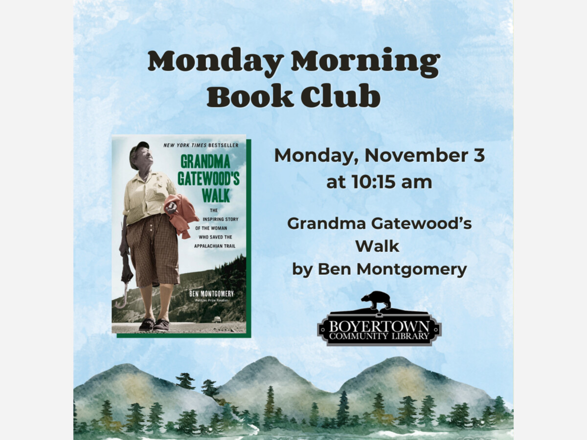 November’s book choice is Grandma Gatewood’s Walk by Ben Montgomery. Request a copy through our online catalog or call the library at 610-369-0496. Adults.