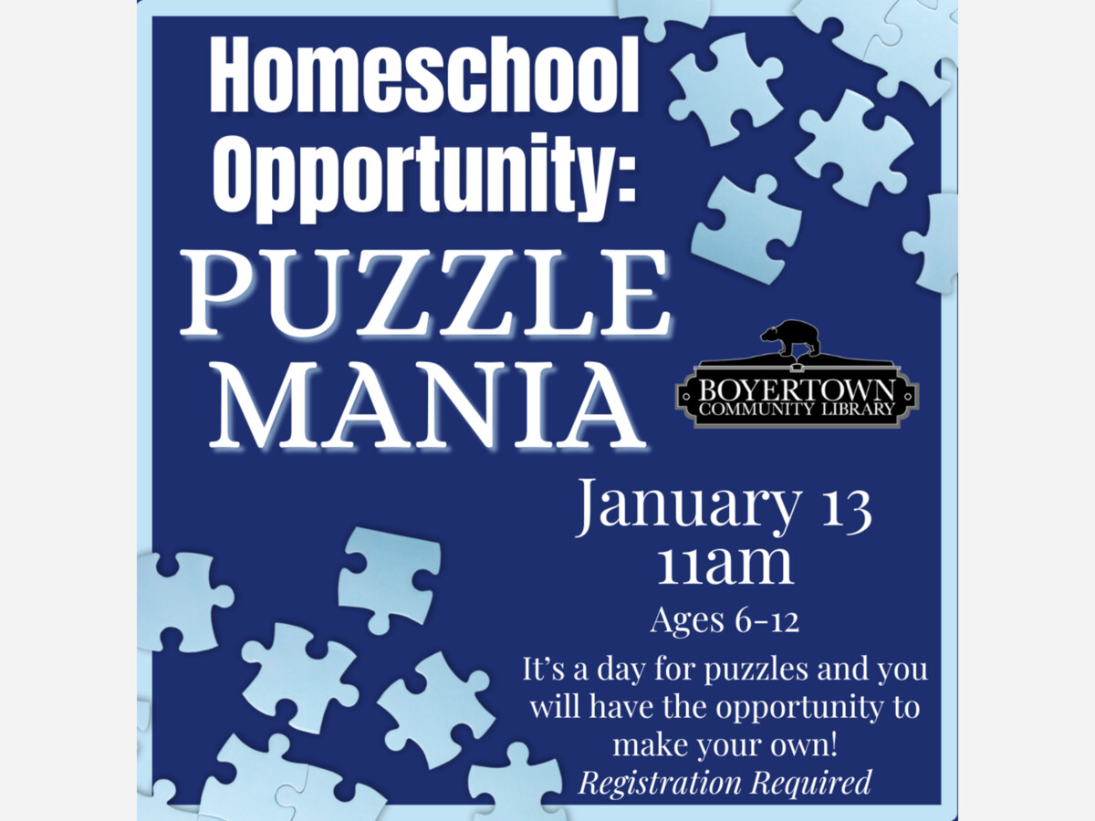 It’s a day for puzzles! Not only are we going to be doing puzzles, but you will have the opportunity to make your own! There will be one big puzzle we can work on together, puzzles to do on your own, and of course puzzles you can create yourself to take home!