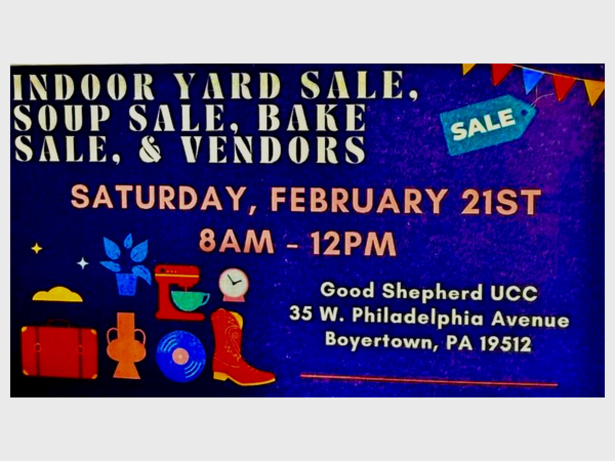 Indoor yard sale, soup, sale, bake sale and vendors. Good Shepherd UCC 35 W. Philadelphia Ave.