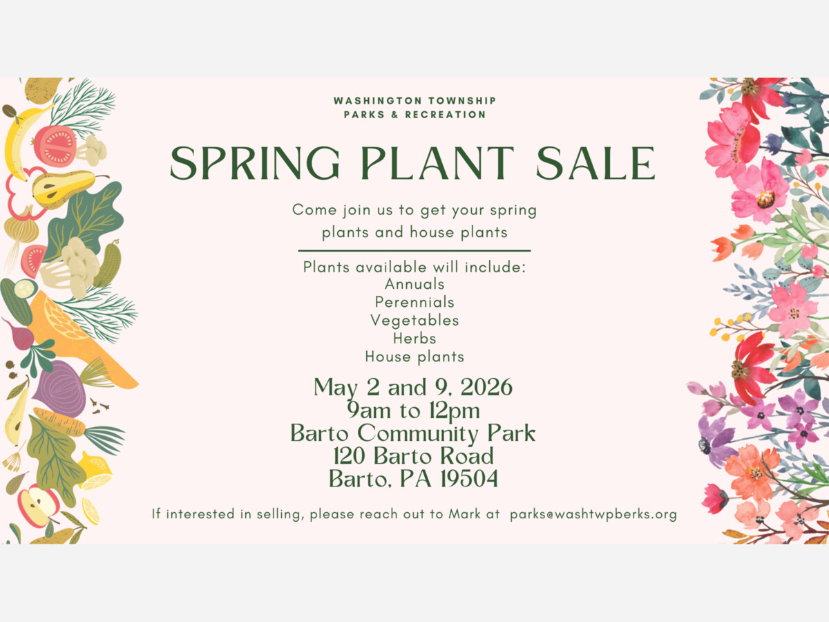 Come join us for our Spring Plant Sale on May 2nd and 9th from 9:00am to 12:00pm at the Barto Community Park.