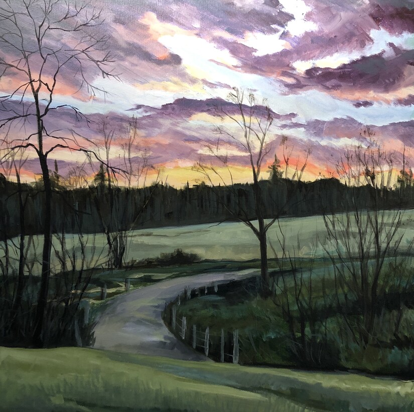 "Fall Sunset Dutch Mill Farm" oil, Susan Duby