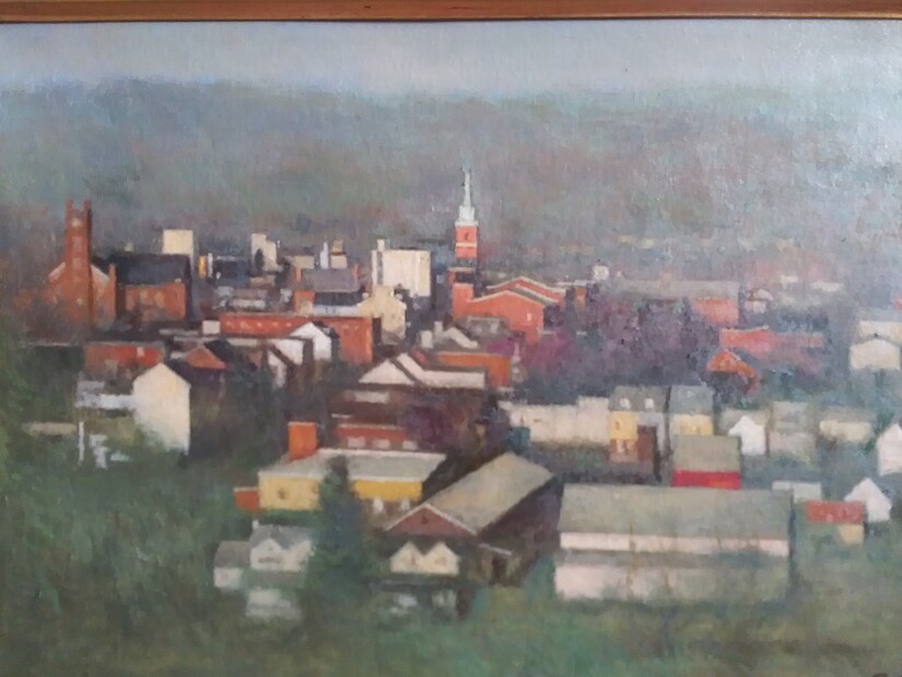 "Boyertown from Cannon Hill" oil, Peter Schnore
