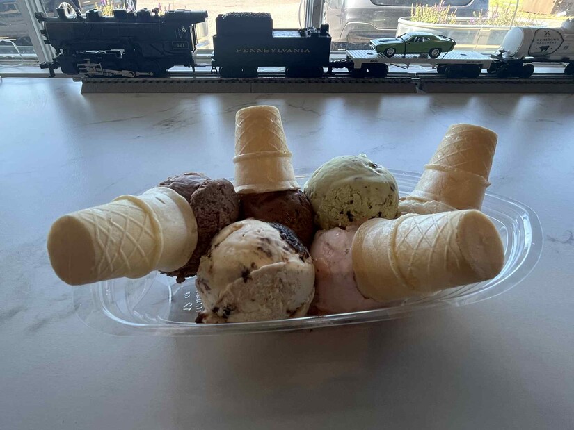Fully sated, we moved on to our fifth ice cream stop. Jen and Jessie’s Creamery is located just outside the tiny enclave of Oley. It’s a long-time ice cream provider in the Oley area whose community role became even more vital when the Oley Turnpike Dairy shut its doors in 2022.