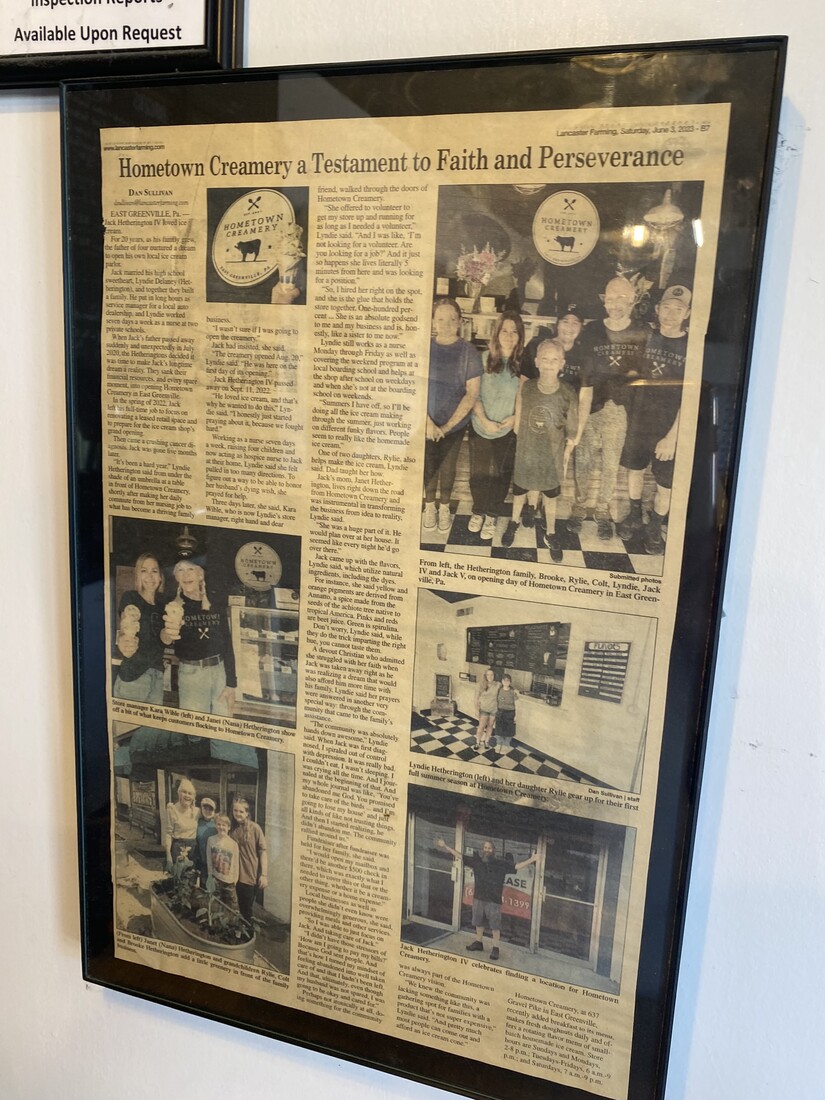 With the dairy farm scene in such turmoil, it was time to assess the homemade ice cream scene in the Boyertown area. I assembled my usual coterie of culinary pundits. My wife Kelly is considered by some to be an ice cream connoisseur, but her penchant for only coffee-based ice creams sometimes clouds her judgments of other flavors. Her motto is “there’s always room for ice cream since it merely fills the interstitial space around the other food.” Todd Kuszyk and Jane Stahl are our foot soldiers in the field. They are both advocates of supporting small, local businesses, and both are very partial to keeping tabs on the local ice cream market.