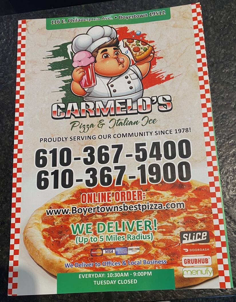 In a heartwarming gesture, Mark Potash, owner of Carmelo's Pizza & Italian Ice, 116 E Philadelphia Ave., Boyertown, invites those in need or without family to join his family for his second annual Thanksgiving Dinner on Thanksgiving Day (11/27/2025) beginning at 3 p.m. RSVP to Mark 215-651-7064.