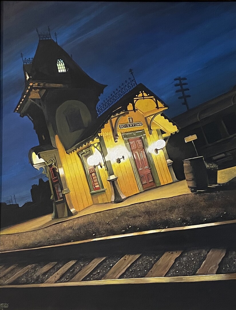 Jenn Montes for "Evening Stroll through the Colebrookdale Railroad," an acrylic painting.