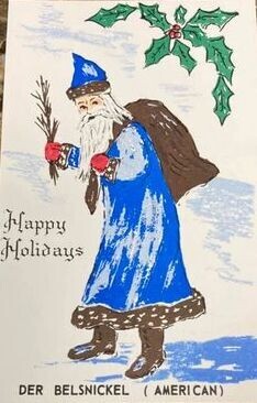 “Der Belsnickel” originated from a character who, like Santa Claus, visited families around Christmas time, was known to give presents to good children, and encouraged them to behave all year long.