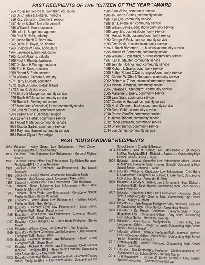 Originally created by the Boyertown Jaycees, the awards program later passed to The Boyertown Times and then to the Lions and Rotary Clubs. Around the program’s 60th year, declining membership in those organizations put the event at risk. In response, a group of past recipients stepped forward to ensure its continuation.