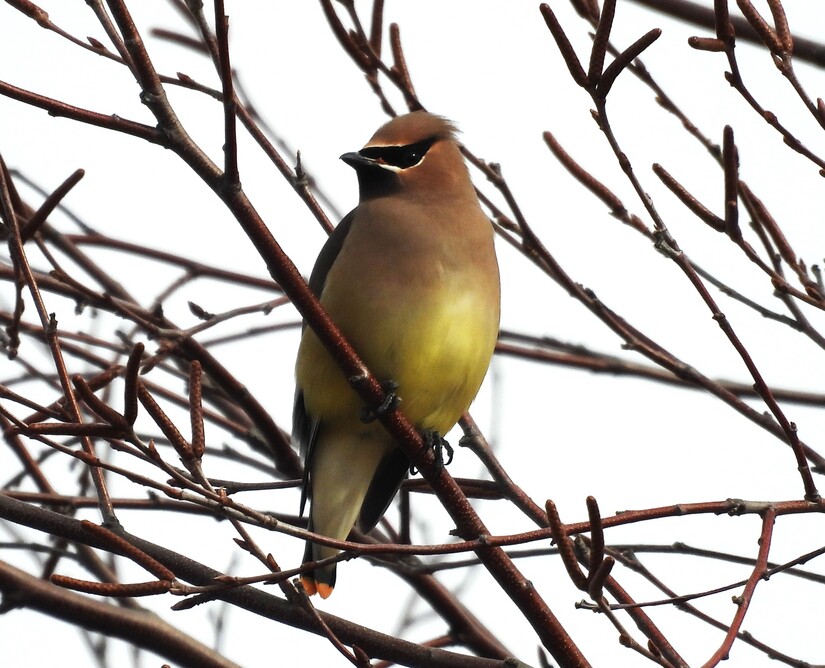 Finally, many birders will tell you that cedar waxwings are among their favorite species. They are regally beautiful with a black mask, yellow belly, and red tail tip. They often bounce around treetops in groups of 12 to 25. We had a flock converge on a tree near where we were standing in Sandy Point State Park. It was a pleasant close to the first three days of our Big Year.