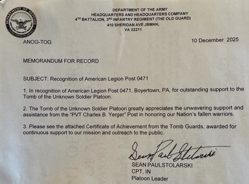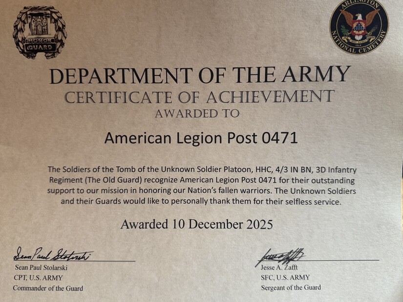 On December 10, 2025, The Unknown Soldiers and their Guards offered their thanks for his selfless service.