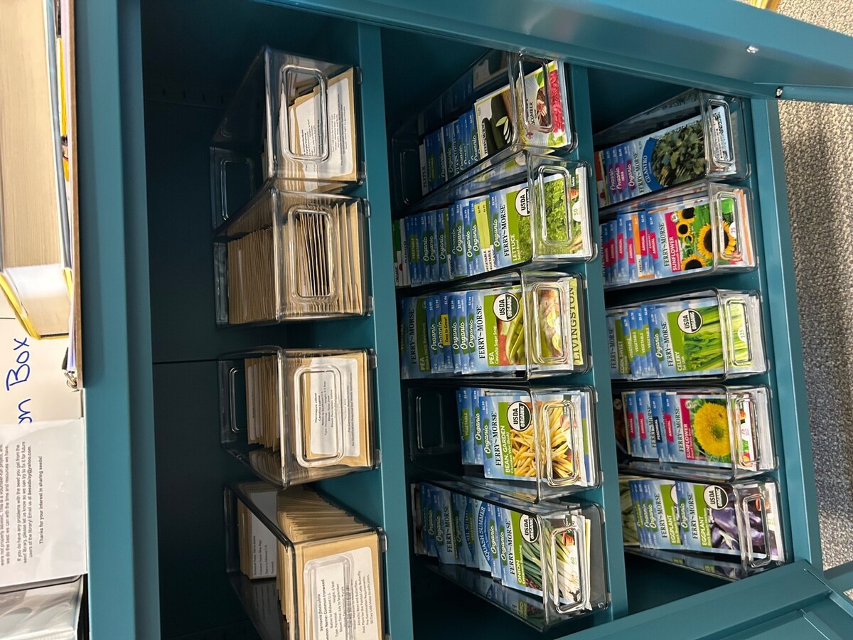 What is nice about this this teal desk and its offerings is that on the most basic level, it is self-serve. You want to grow sunflowers? Take a packet. But if there is more of a need (like my butterfly bush conundrum), there are programs AND master gardeners that can be helpful in that regard. The first of many monthly programs is offered is at the end of this month which is very timely. Why? Because the last Saturday in January is National Seed Swap Day.
