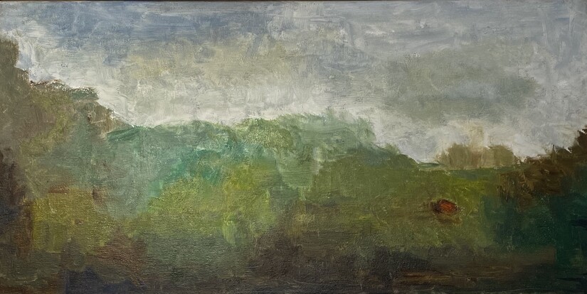 Second place was awarded to Lindsay Wallace for her oil painting "Land Wander, Primal Green."