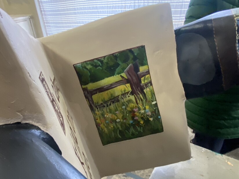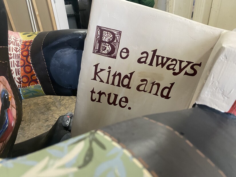 The family's vision was to showcase Robin's love of reading, quilting, and gardening her husband Steve explained. Fans will find the sculpture covered with "patches" of images that Robin loved including her namesake.