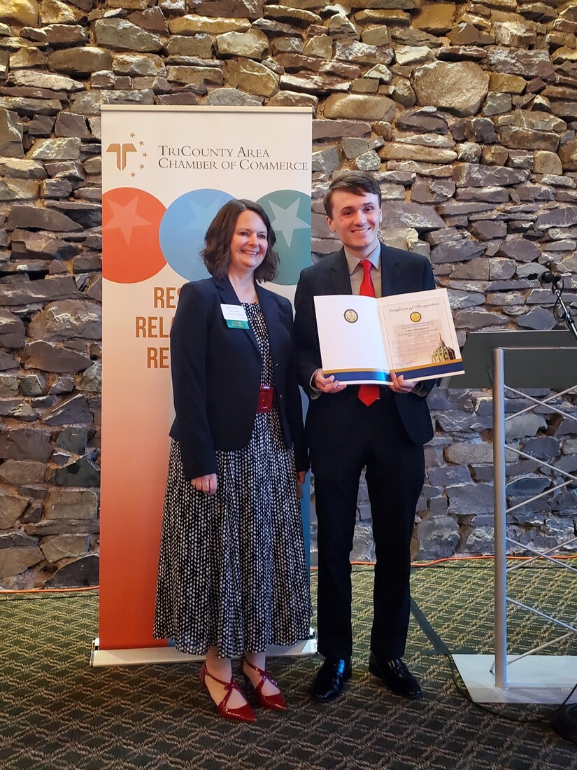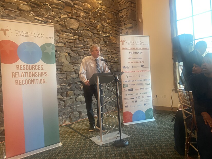 ...and president of TriCounty Chamber Harrison Santangelo with Master of Ceremonies Greg Herb...