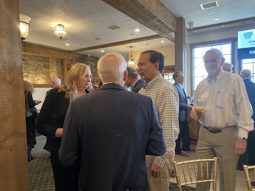 (from right) Tom Gosse prepares to join the conversation with the Pottstown Foundation's David Kraybill and Executive Director of Boyertown's YMCA Alicia Dinnell.