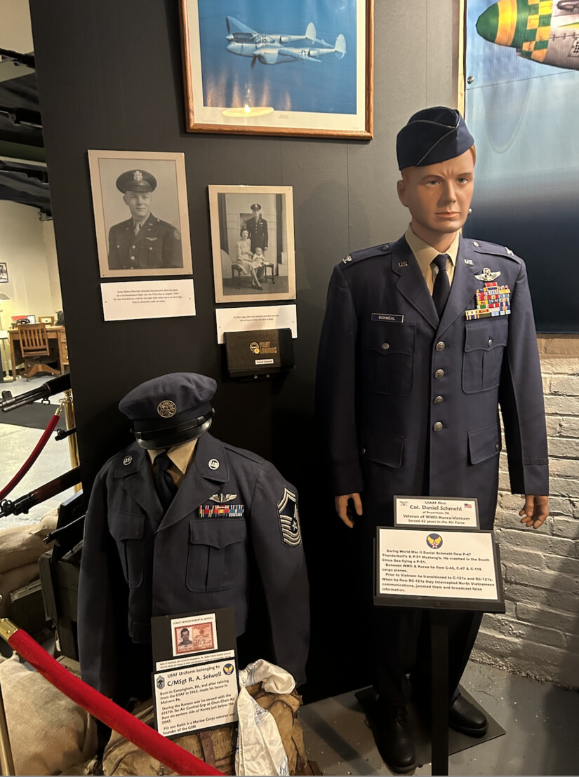 There are many other pieces of the museum – too numerous to name, too numerous to describe their role in the war years…sweetheart pillows, recycled animal fat, Virginia Hall, Mae West vests, Allison engines…. There are award winning Escape Rooms (yes, plural!), talking pictures, a huge air field diorama, period uniforms, and music.